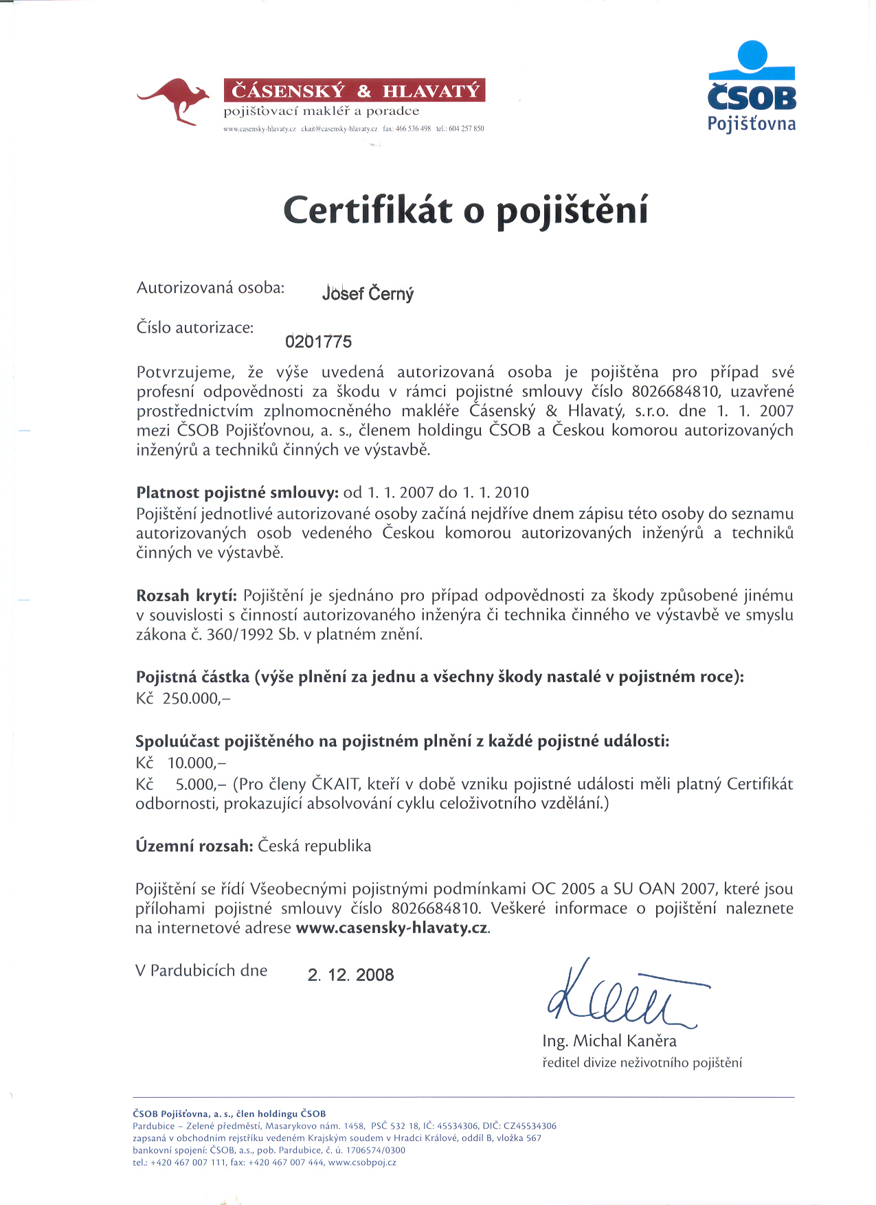Dlouholeté zkušenosti, praktické dovednosti a v neposlední řadě členství vedoucích pracovníků v České komoře autorizovaných inženýrů a techniků činných ve výstavbě jsou zárukou pro všechny naše investory.